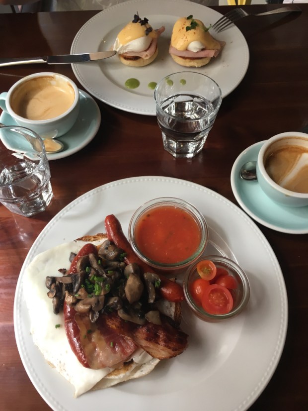 Im „À Table“ sind wir durch Zufall gelandet, weil wir im Vorbeilaufen einen freien Tisch am Fenster entdecken. Für unsere Spontanität wurden wir mit einem leckeren Frühstück belohnt, das definitiv auch in Sachen Optik punkten konnte. Wir können besonders die Kompositionen mit Ei empfehlen (Eggs Benedict auf Schinkentoast und Croque Madame mit Salatbeilage), aber auch die süßen Teilchen aus der Auslage sahen absolut köstlich aus. Dazu stimmen auch noch Preise und Service. Ein absoluter Glücksgriff.