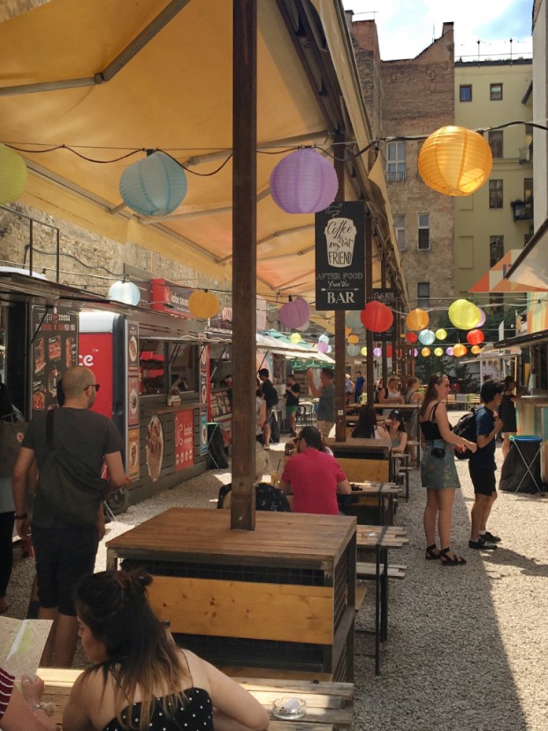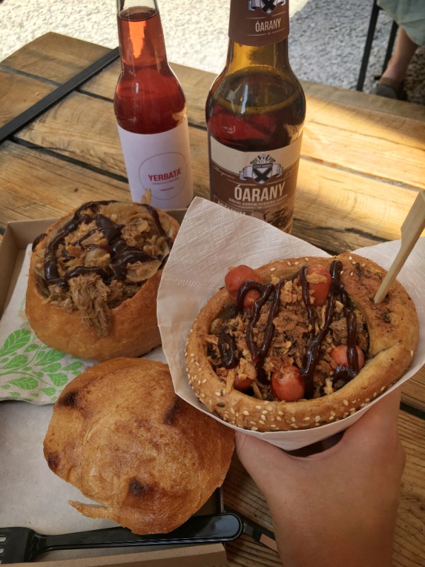 Das „KARAVÁN“ löst garantiert bei jedem Streetfood-Liebhaber direkt Schnappatmung aus, denn hierbei handelt es sich um einen permanenten Streetfood-Markt bestehend aus vielen kleinen Imbisswägen, die allerhand Leckereien servieren. Von Pulled Pork im Brotlaib über Lángos-Burger mit Hähnchen bis hin zu Chimichanga-Burritos gibt es alles, was das Herz begehrt. Auch für den süßen Zahn ist ausreichend Auswahl geboten. In der Mitte des Marktes befinden sich einige überdachte Tische, an denen man zumindest tagsüber problemlos einen Platz ergattern kann. Wir haben uns hier kurz vor unserer Abreise gestärkt und waren rundum zufrieden.